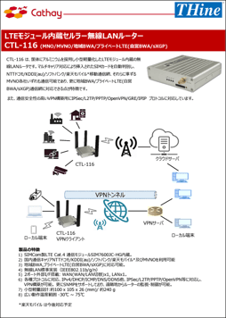 「CTL-116」は、SIMCom製LTE通信モジュールSIM7600JC-HG および無線LANを内蔵し、筐体にアルミニウムを採用した小型軽量のVPNルーターです。
