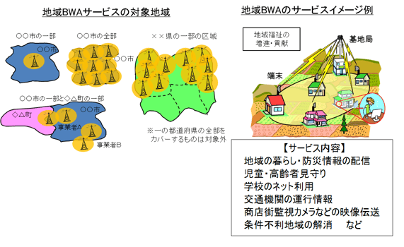 BWAには地域BWA(広範囲)、自営等BWA(地域限定)があります。